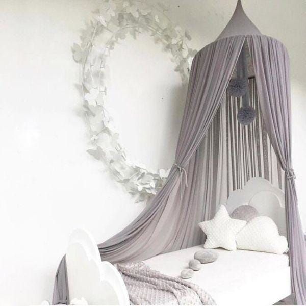 Un ciel de lit bébé gris perle pour une chambre enchantée