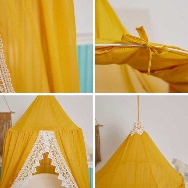 Imaginez le sourire de votre enfant under ce ciel de lit jaune suspendu, stimulant son imagination. Les couleurs vives et joyeuses de ce produit créent une ambiance joyeuse qui favorise le développement et l’épanouissement de votre enfant, tout en apportant une lumière douce et chaleureuse dans sa chambre.
