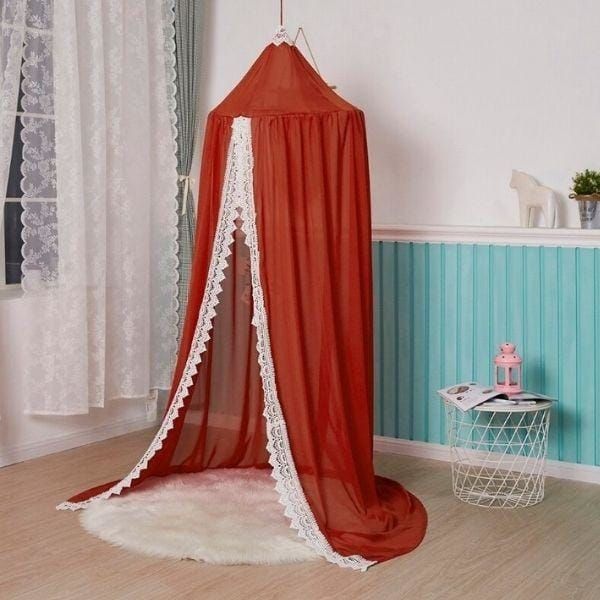 Imaginez votre chambre d’enfant sublimée par l’élégance de notre ciel de lit en couleur rouille qui se marie harmonieusement avec tout type de décoration. Ses détails délicats, comme la dentelle, apportent une touche de sophistication à l’environnement. Ce choix esthétique n’est pas seulement un élément de style, mais aussi une pièce de qualité que vous pouvez chérir au fil des ans.