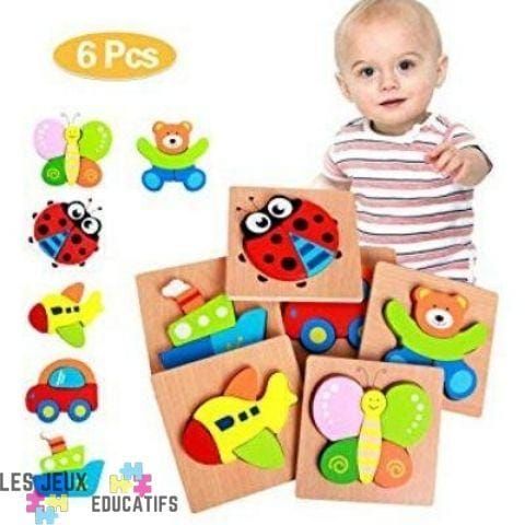 Découvrez notre Jouet Pour Bébé Puzzle Animaux En Bois Lot De 6pcs