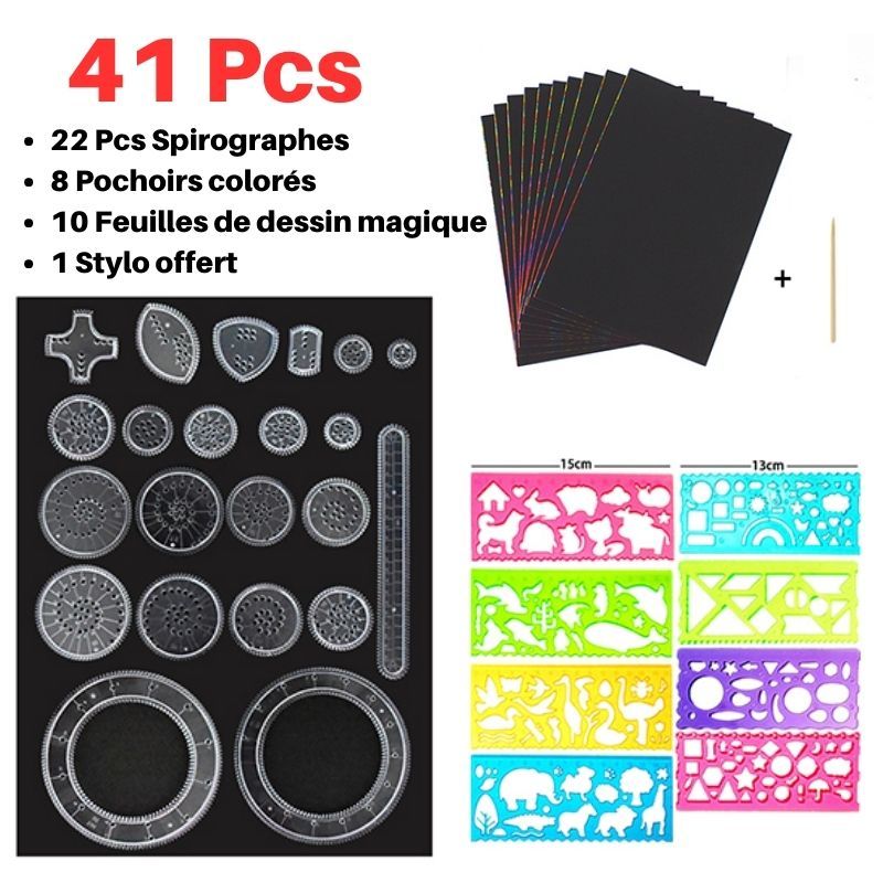 Explorez un monde de créativité à travers le Spirographe, un outil fascinant qui transforme chaque trait en une œuvre d’art unique. À la fois adapté aux enfants et aux adultes, cet outil stimule l’imagination tout en développant la motricité fine et la concentration. Offrez à vos moments de loisirs une dimension artistique, où plaisir et partage se rencontrent pour créer des souvenirs inoubliables. Faites le premier pas vers une aventure créative exaltante !